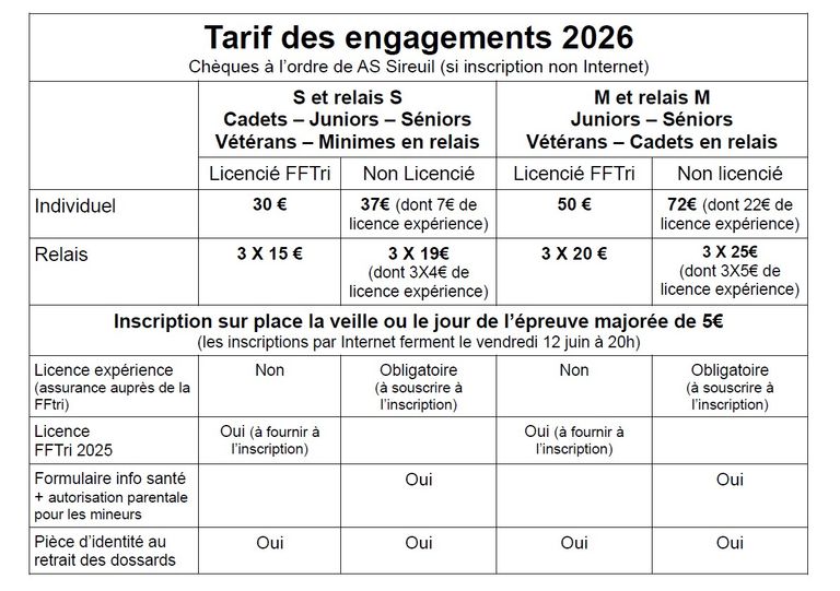 Notre tarif est le même que celui de l'année passée, seul le coût de la "licence expérience" (assurance journée pour les non licenciés) a augmenté.